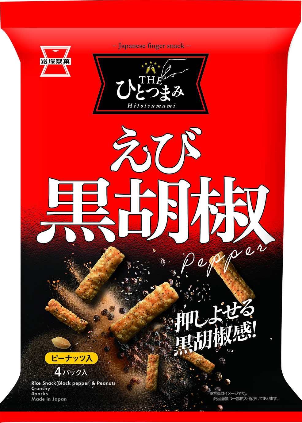 | 商品説明 | 生地にも粗挽き黒胡椒を練りこみ、更にスパイシー感をアップしたおつまみスティックです。ピーナッツ入り。 |